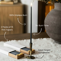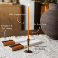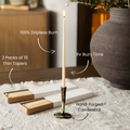 *Our Natural and Ivory Melissa Thin Beeswax Tapers are made from 100% pure beeswax. Our Black & Burgundy Melissa Thin Beeswax Tapers are made from a blend of pure beeswax as well as the highest quality paraffin wax, with an added fragrance of myrrh (black tapers) and sandalwood (burgundy tapers).