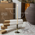 *Our Natural and Ivory Melissa Thin Beeswax Candles are made from 100% pure beeswax. Our Black and Burgundy Melissa Thin Beeswax Candles are made from a blend of pure beeswax as well as the highest quality paraffin wax, and emit a sweet yet smoky scent of myrrh, perfect to help you wind down after a stressful day.