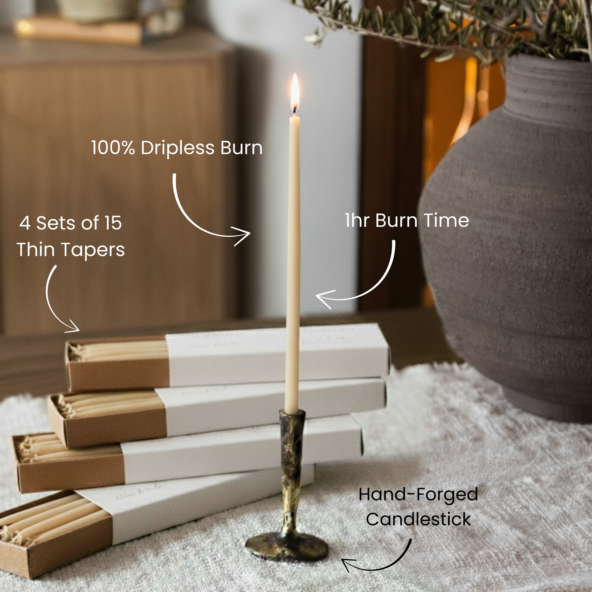 The Natural Stillness Set (Brass Candlestick + Set of 15 Thin Candles)