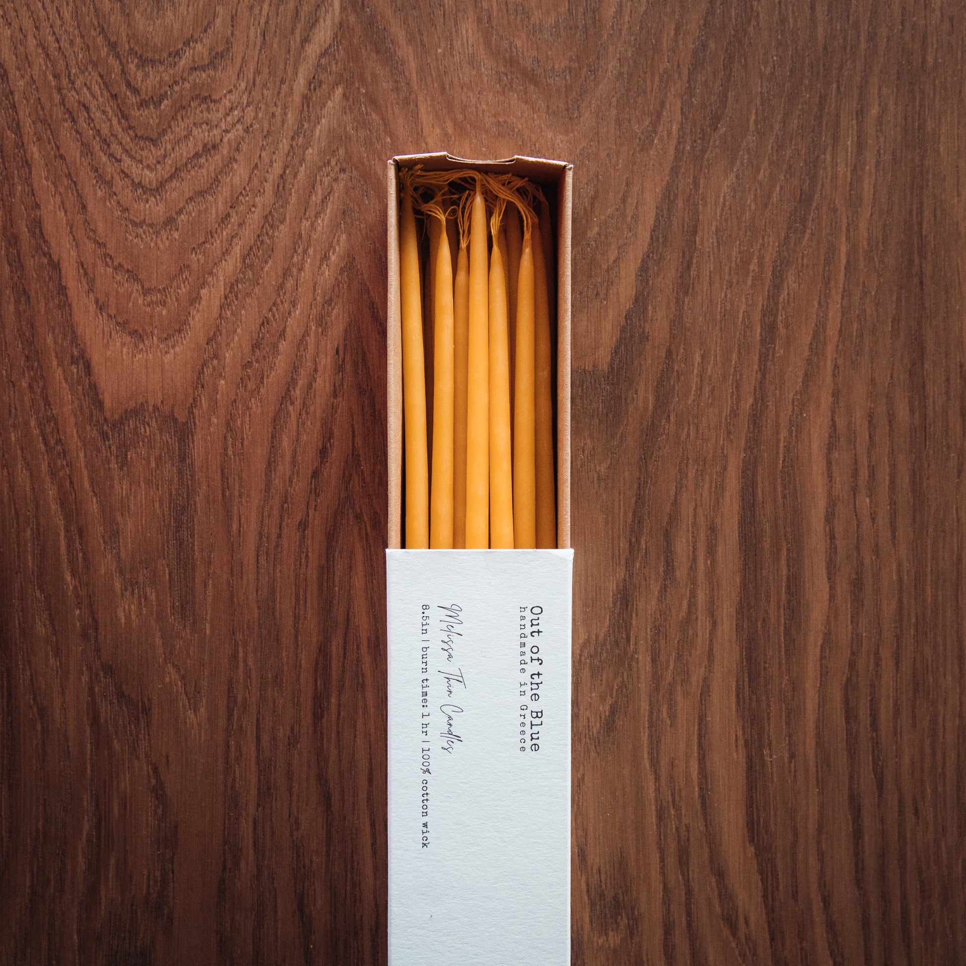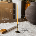 Hand-forged in northern Greece, the solid brass candlestick draws from the timeless traditions of the Byzantine era, while the hand-poured beeswax thin tapers—crafted in Athens from the finest beeswax—burn with a gentle, flickering light and a subtly sweet scent. Together, they offer a serene and grounding presence, inviting focus, reflection, and calm in the midst of a turbulent world.