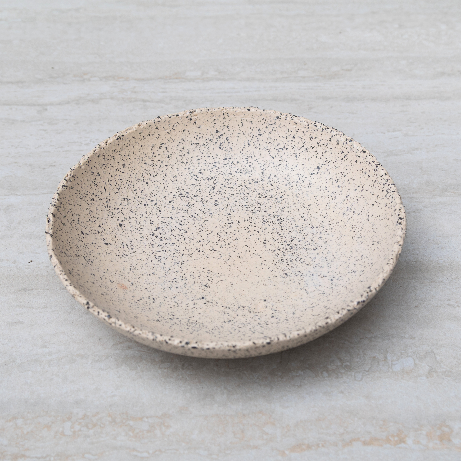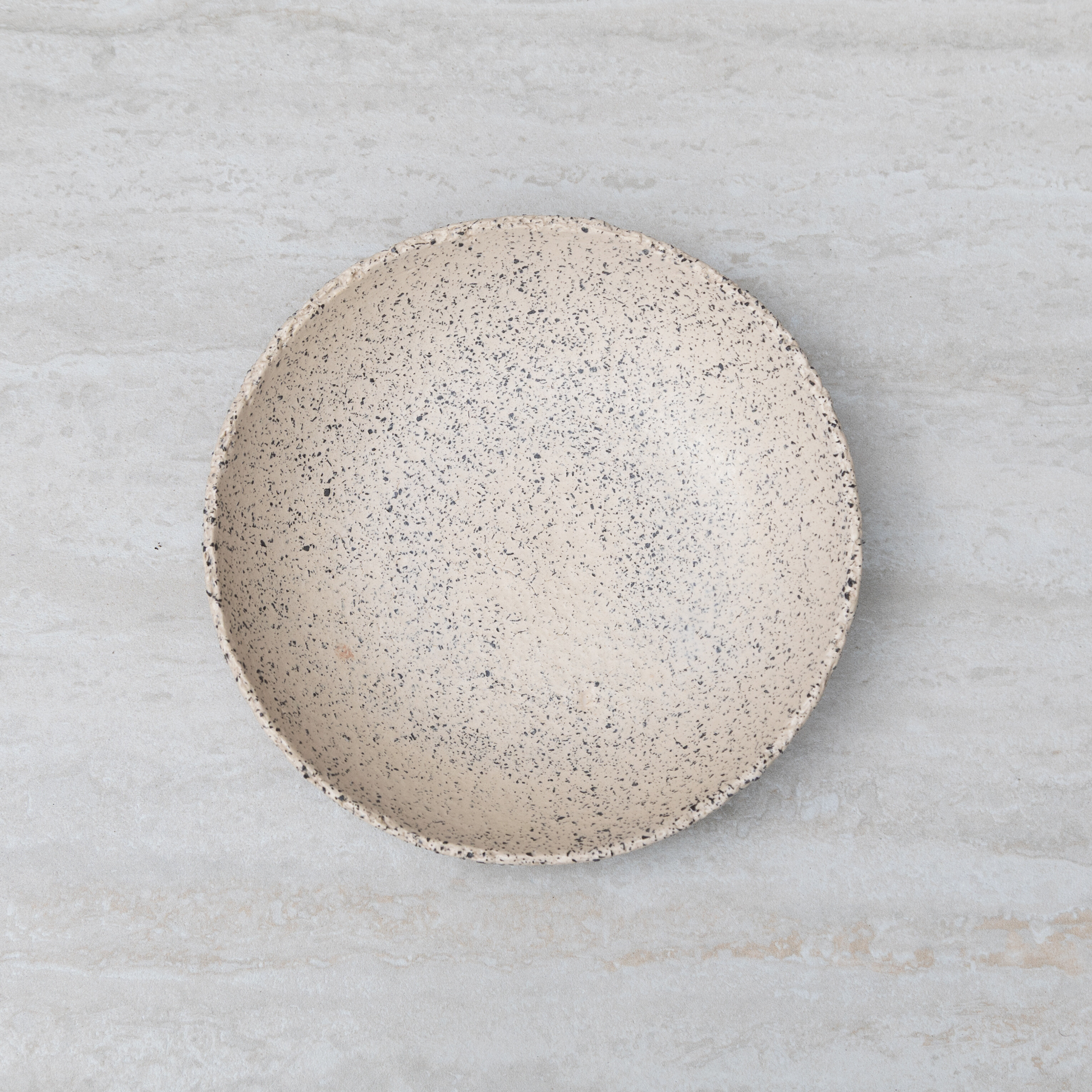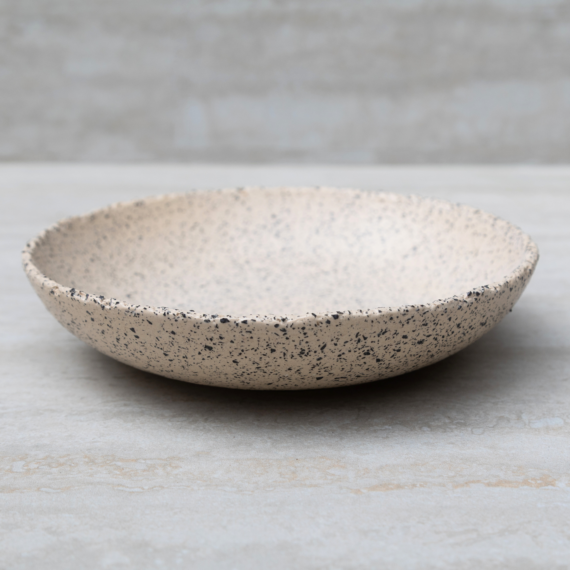 Thick, black speckles against a wheat colored clay with raw edges and a glossy glaze, create a rustic, intriguing visual image. A one-of-a-kind piece, the Petra Bowl is versatile and can be part of your dinnerware set or used as a decorative item.