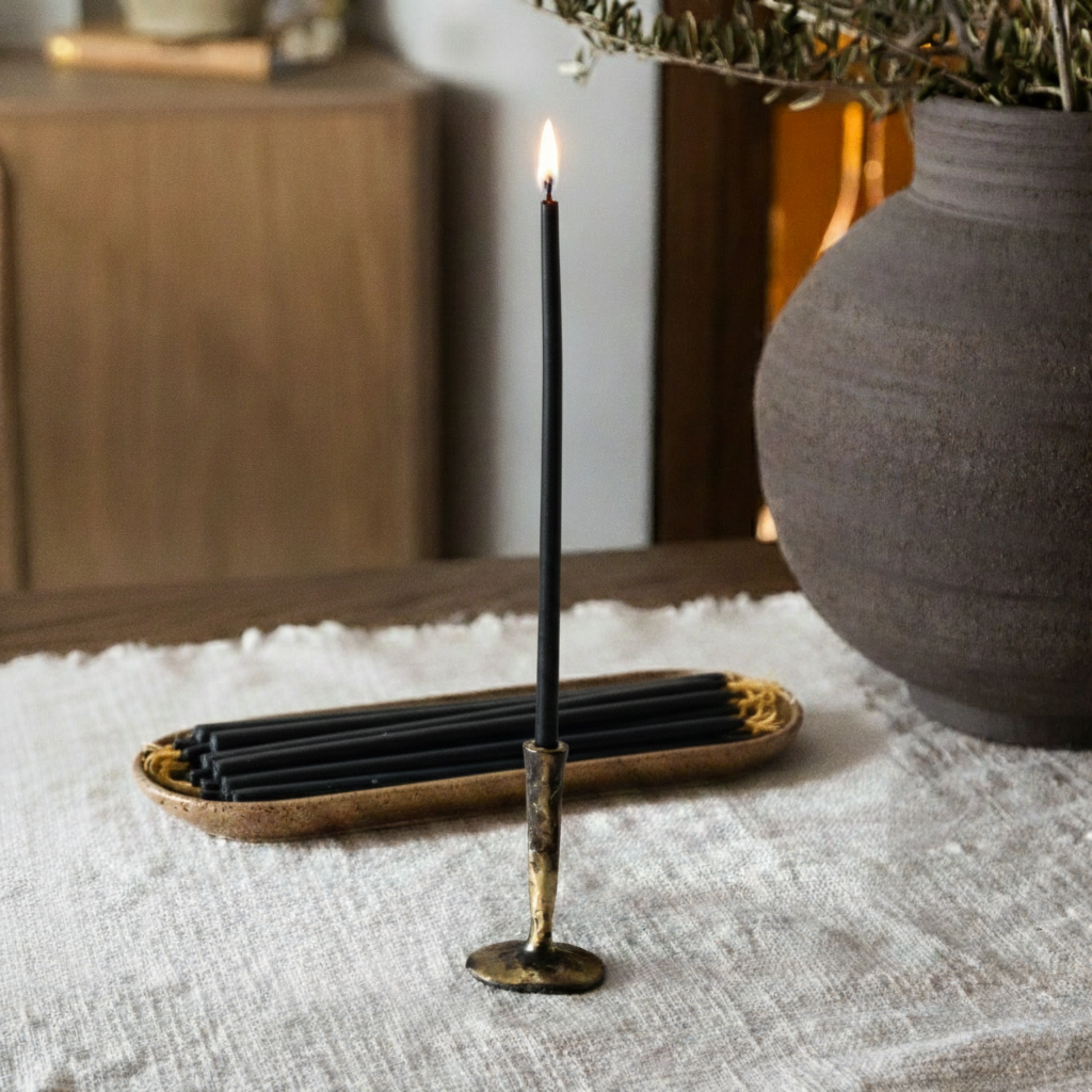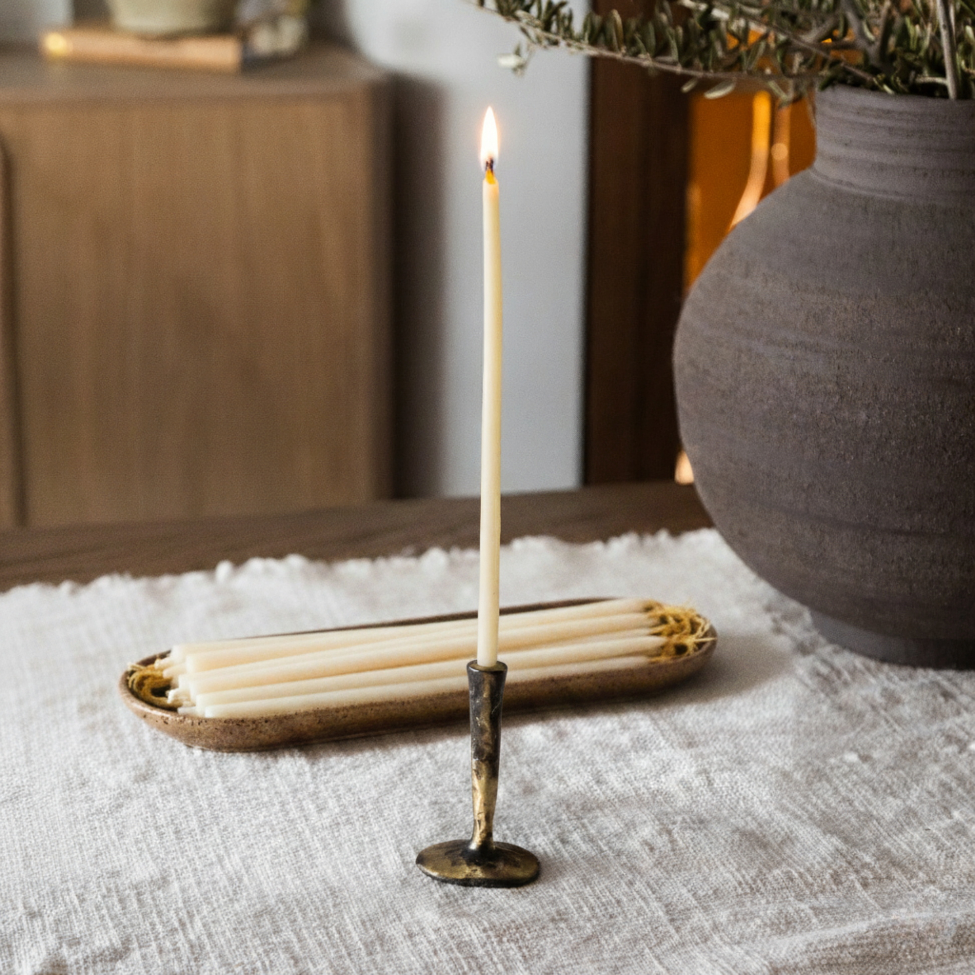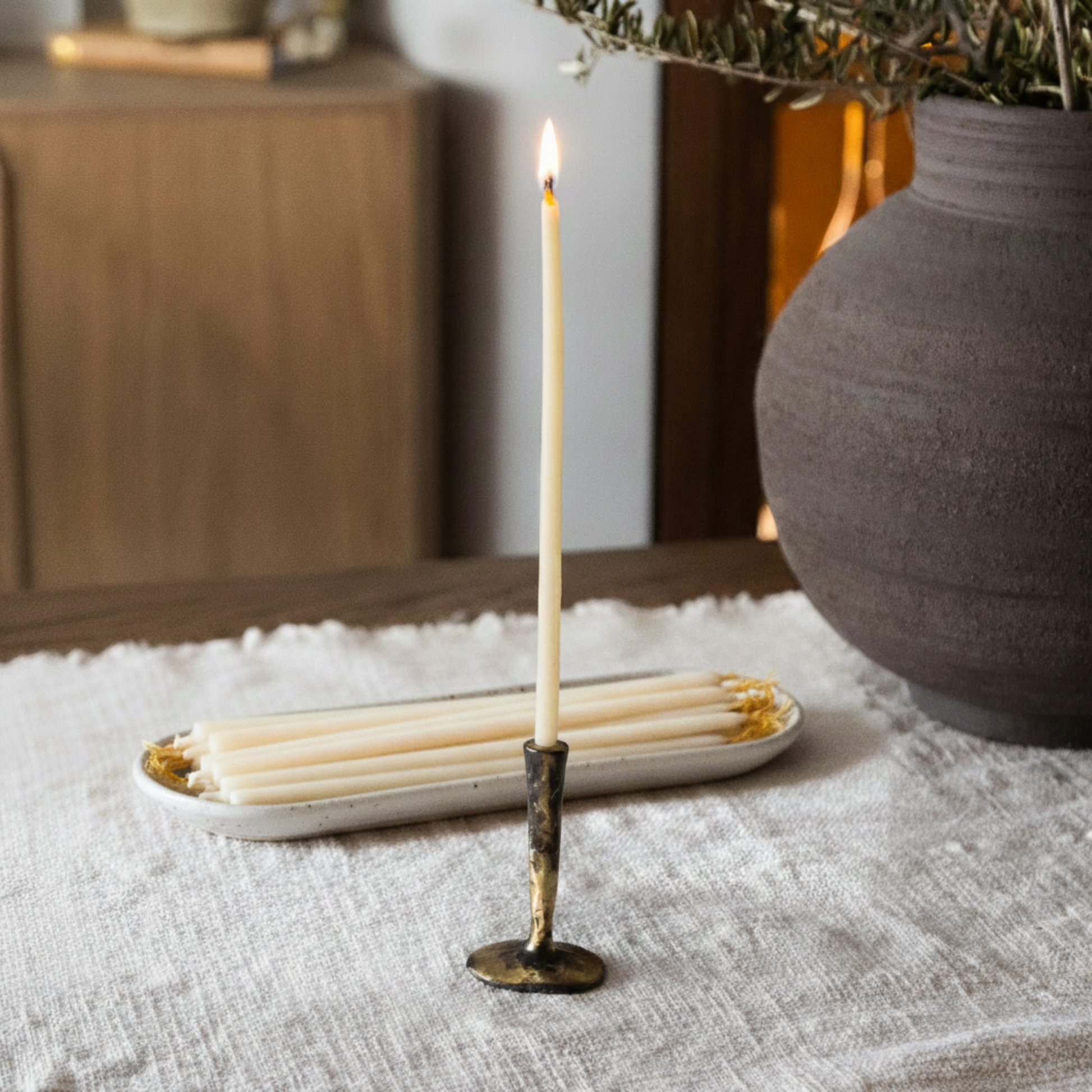 Light a candle each evening to create a calming ritual with the soft glow of our Mini Brass Candlestick and Beeswax Thin Tapers*—perfect for journaling, meditation, or simply quiet evenings of stillness. The candle tray is the perfect way to store and display your thin taper candles.