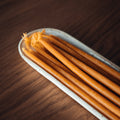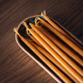 *Our Natural and Ivory Melissa Thin Beeswax Tapers are made from 100% pure beeswax. Our Black & Burgundy Melissa Thin Beeswax Tapers are made from a blend of pure beeswax as well as the highest quality paraffin wax, with an added fragrance of myrrh (black tapers) and sandalwood (burgundy tapers).